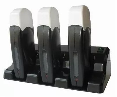 Chauffe-cire à cartouche avec station de base en plastique, adapté pour chauffer 3 cartouches de cire en même temps.